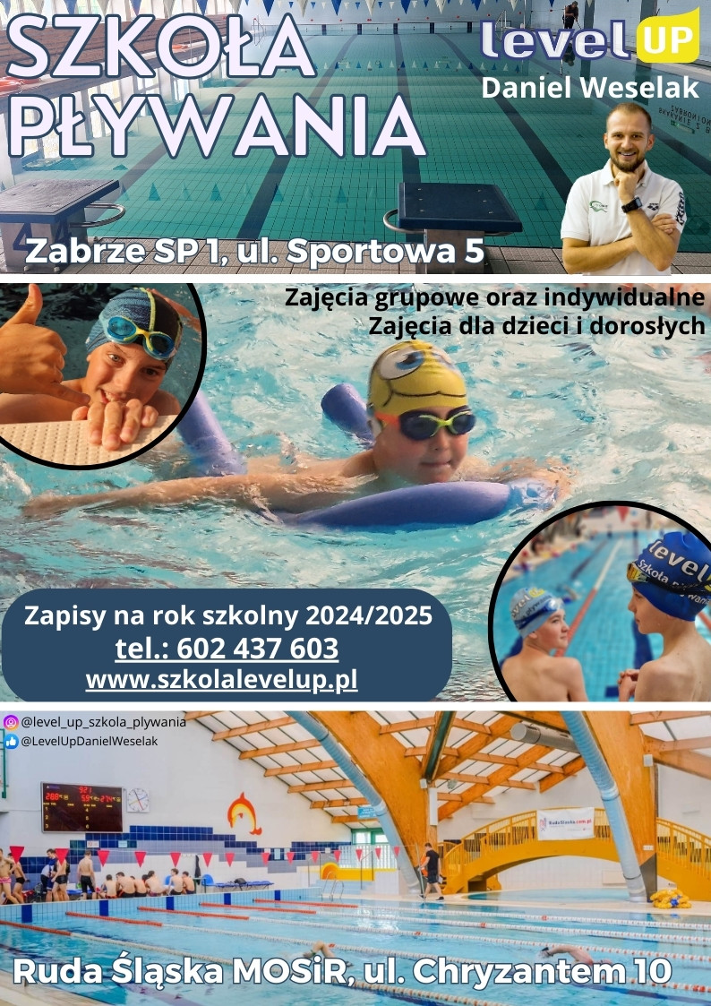W okresie ferii zimowych planowane są zajęcia na pływalni Chryzantem 10 w Rudzie Śląskiej w następujących terminach: